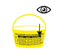 Jaune piége TRAP-01 fait en polypropyléne. Le récipient comporte un tableau imprimé indiquant les seuils de nocivité des insectes dans le colza. Le récipient est utilisé pour aider à surveiller les ravageurs et à prendre des décisions pour une éventuelle pulvérisation.