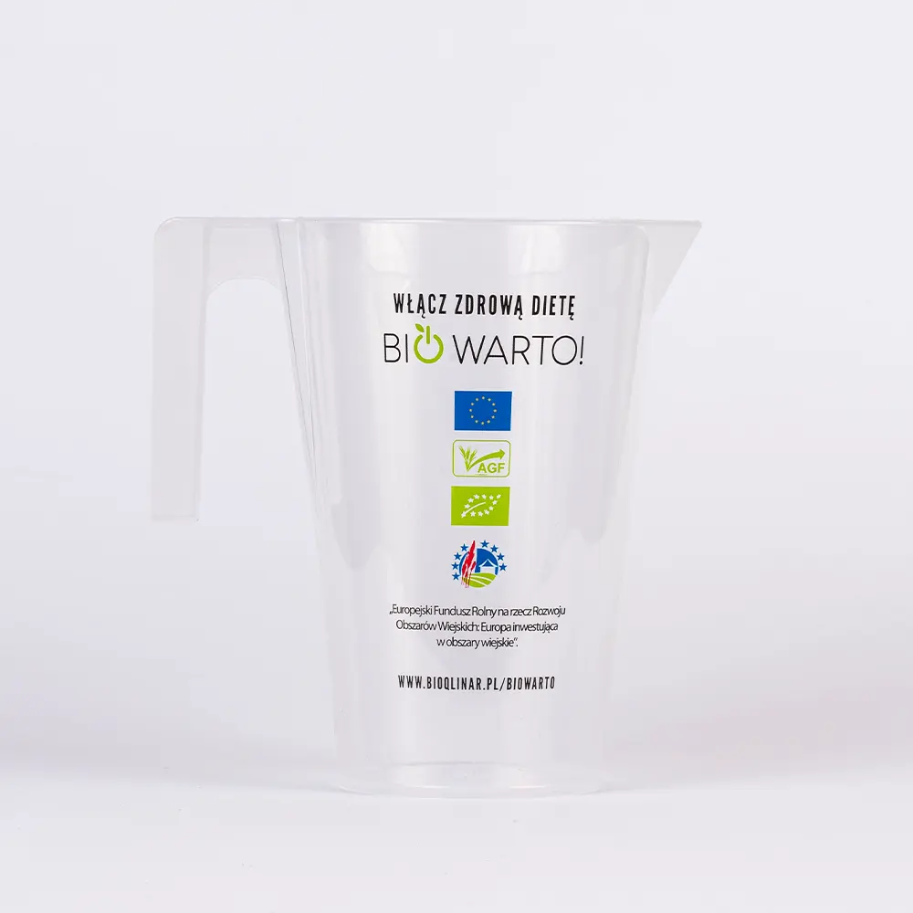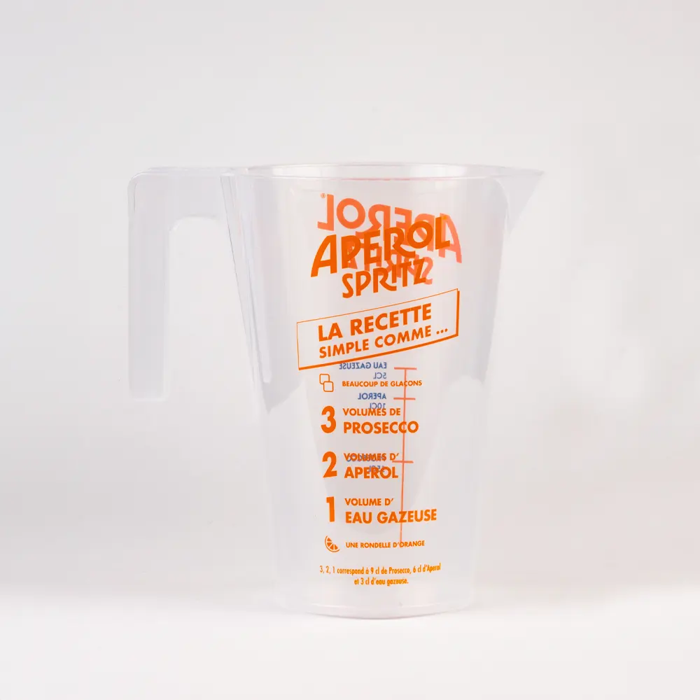 Grâce à ses larges possibilités de personnalisation, le verre doseur FAMILY SMART peut être marqué d’un logo, de graduations de mesure personnalisées ou d’une graphique publicitaire. Les impressions sont réalisées par sérigraphie, une technique résistante à l’abrasion et aux agents chimiques, garantissant une grande durabilité et un aspect esthétique soigné.